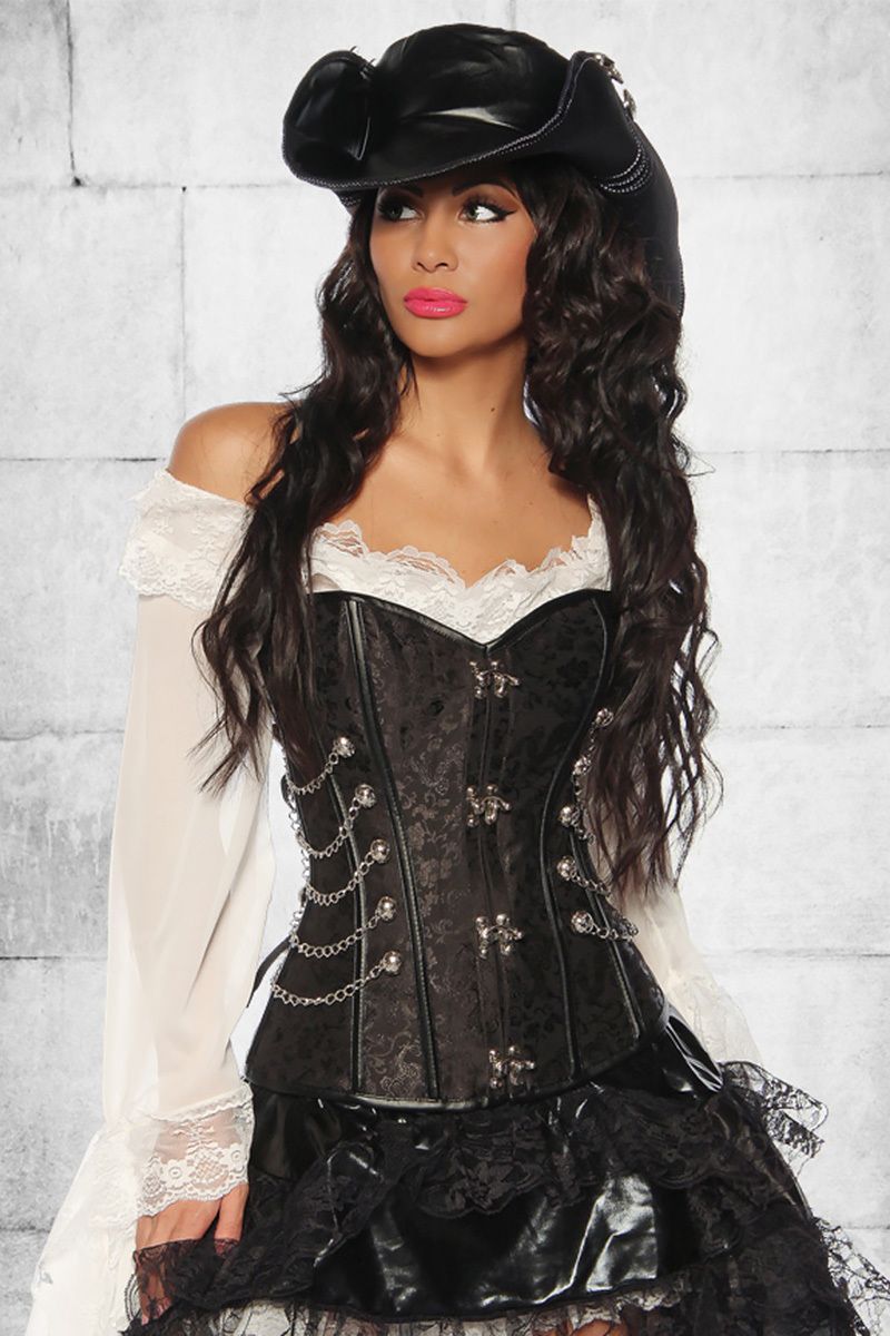 Sehr dekorative Vollbrustkorsage, schwarz, im Stile Gothic / Steampunk
