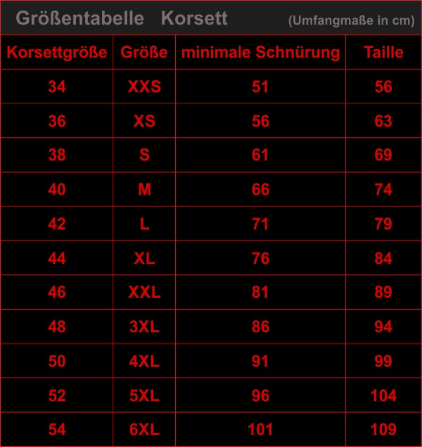 Die erste Schnürung eines Korsetts sollte sehr sorgföltig nach der beiliegenden Schnüranleitung vorgenommen werden, dann habt Ihr sehr lange Freude an diesem schicken Unterbrustkorsett.