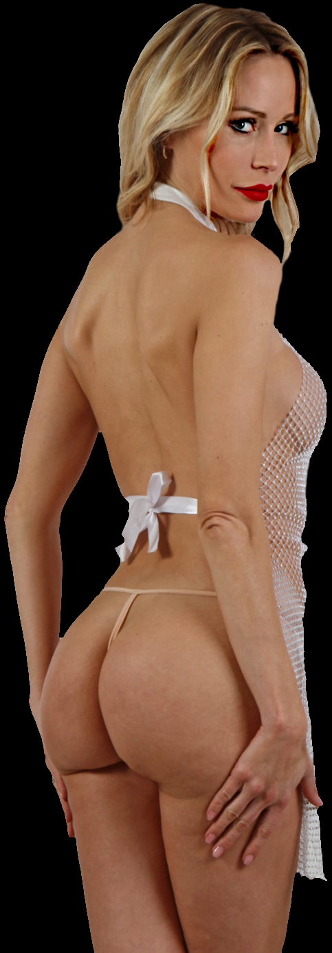 Kleid trifft es vielleicht nicht so ganz. Vom Schnitt her ist es eben eher eine Schürze, also hinten komplett offen außer der weißen Bindeschleife. Oben mit einem Neckholder gehalten, der in zwei Weiten verschlossen werden kann. Das Gewebe ist ein gut dehnbares feinmaschiges Netz mit eingearbeiteten Strasssteinchen.