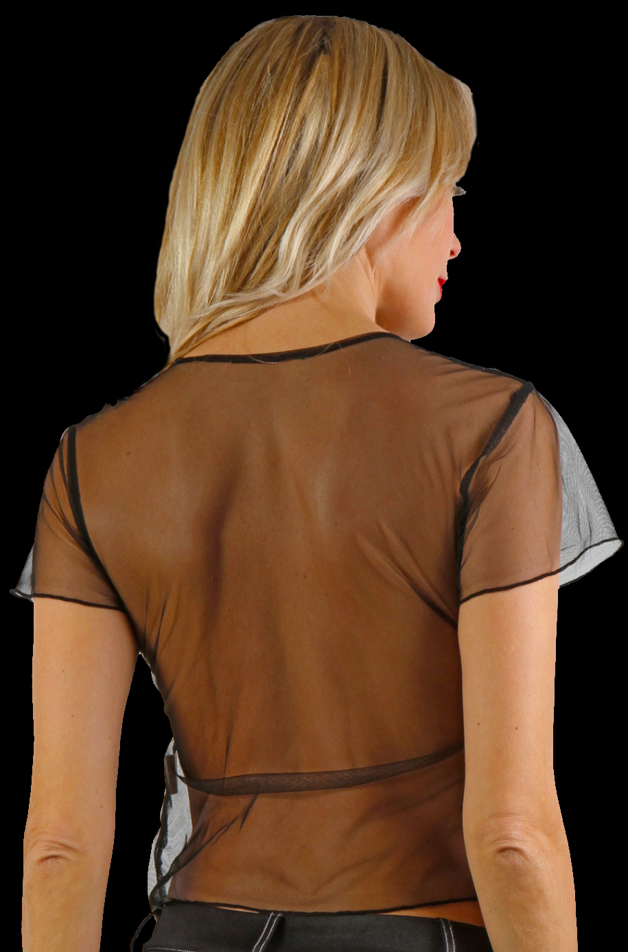 Preview: transparentes top mesh schwarz kurze ärmel brust knoten spielerspelunke