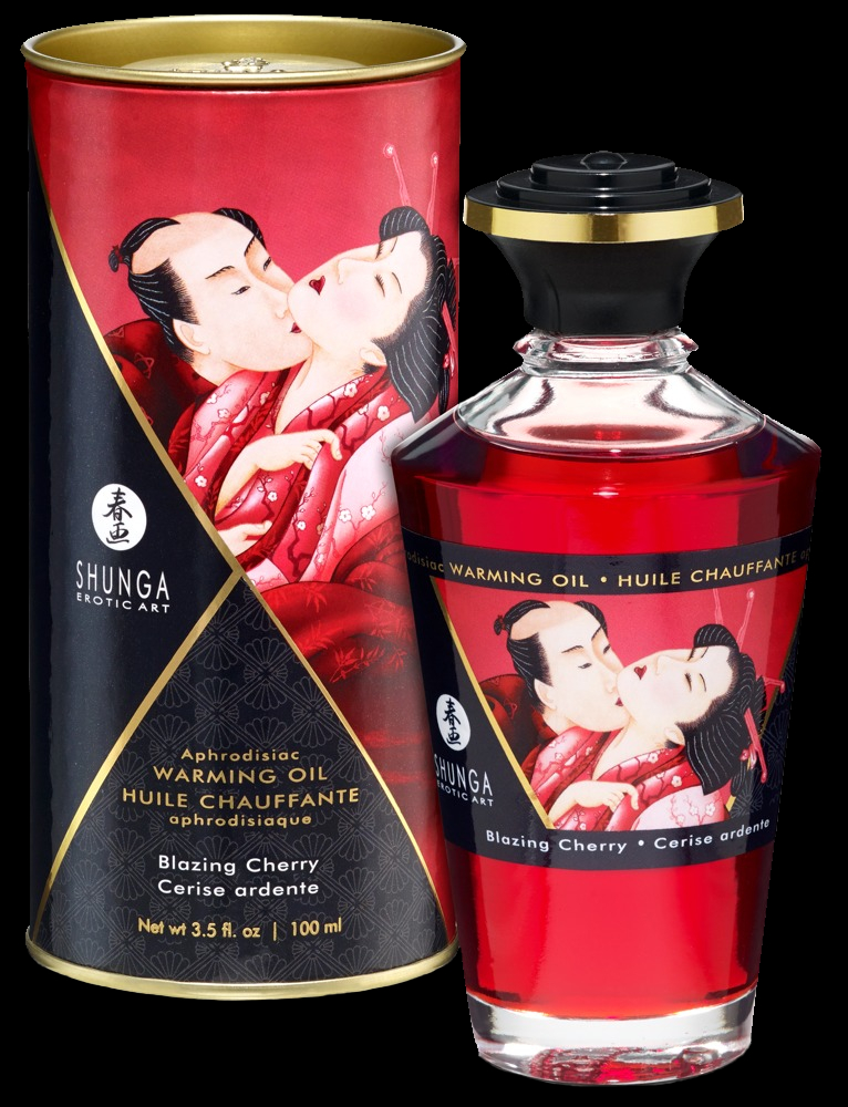 Wärmendes Massageöl mit Blazing Cherry-Aroma und kribbelndem Wärmeeffekt für die sinnliche Partnermassage. Durch Anpusten oder Küssen verstärkt sich der Effekt. Das Öl kann aphrodisierend und luststeigernd wirken. Es ist lebensmitteltauglich, ohne Zucker. Der edle Glasflakon und die luxuriöse Verpackung machen es zum idealen Geschenk, an dem Beide Spaß haben.