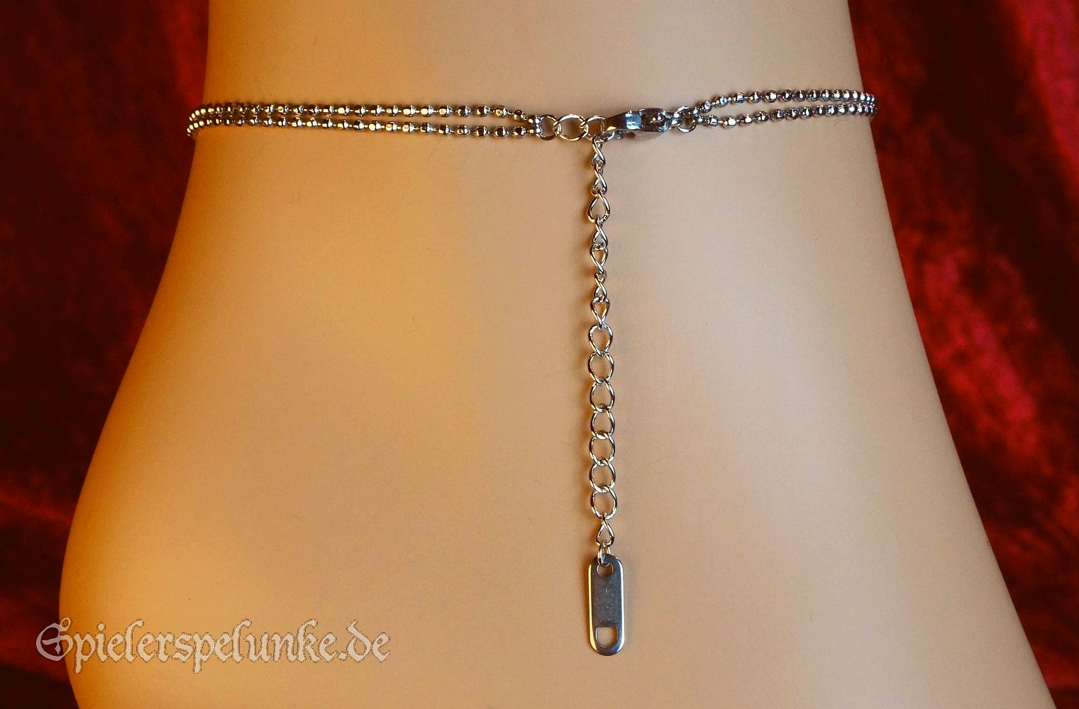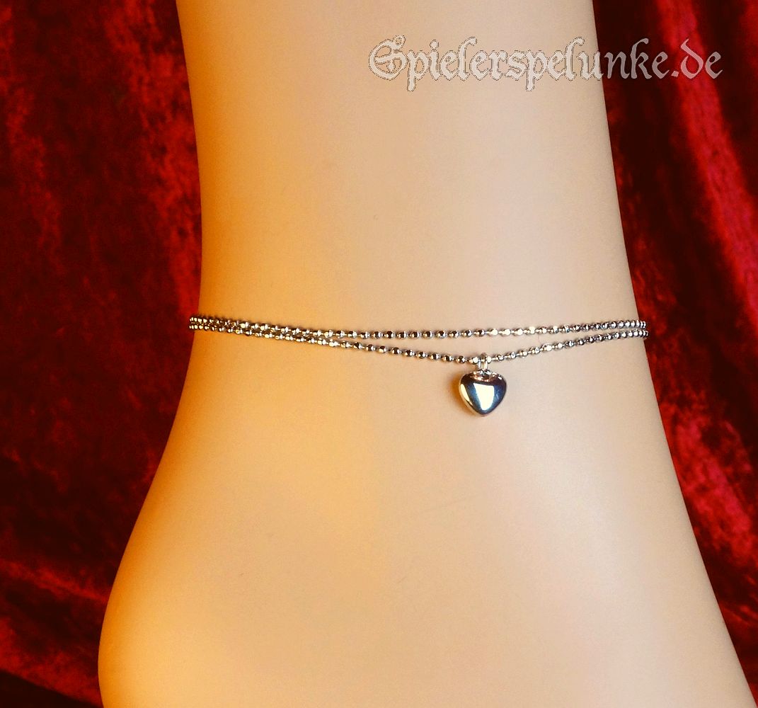 Doppellagiges Fußkettchen mit Herzanhänger Edelstahl 22cm + 4cm Verlängerung