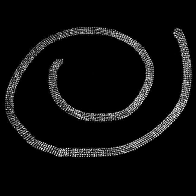 Paillettenband, ca. 13mm breit und 1,05m lang aus fünf Reihen zarter Metallpailletten, silberfarben, für einen kreativen Halsschmuck je nach Lust und Laune.