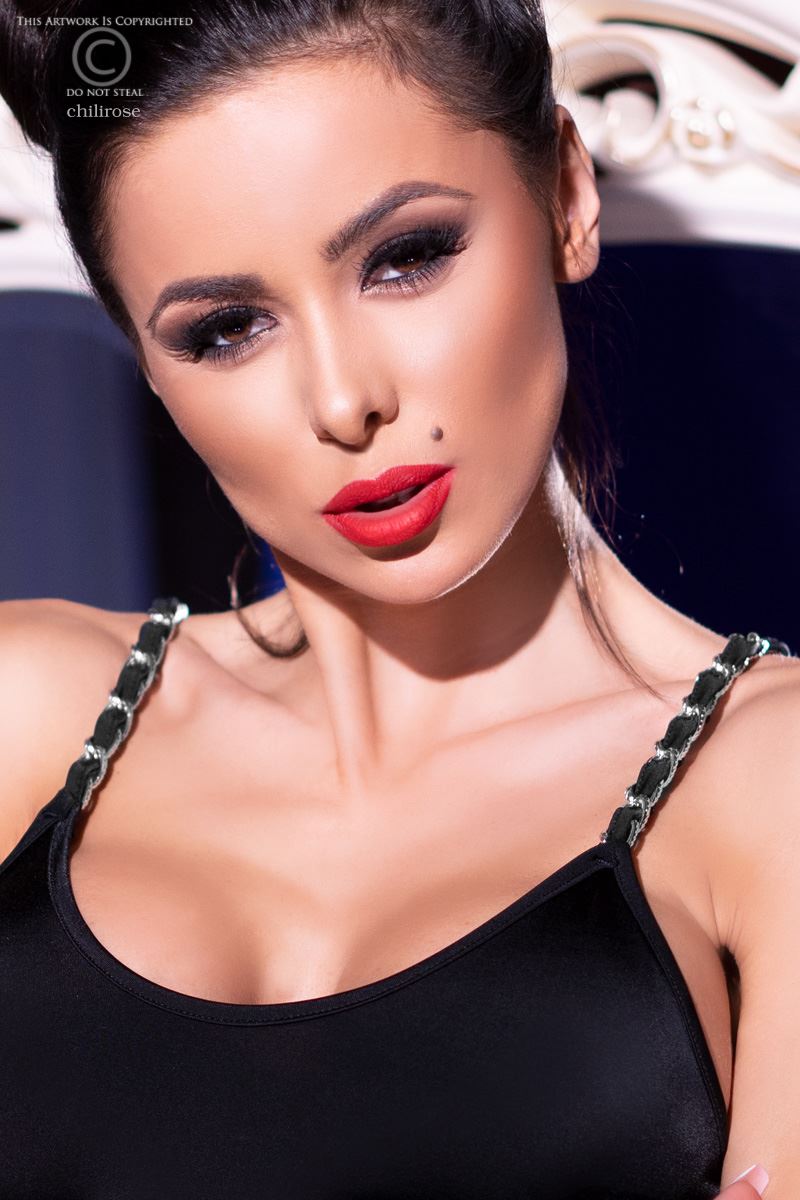 Elegantes schwarzes Minikleid aus schimmerndem Stoff, der sich eng an die Körperkurven anschmiegt. Die schmalen Träger sind mit luxuriösen silberfarbenen Schmuckelementen verziert. Ein passender String ist inklusive.