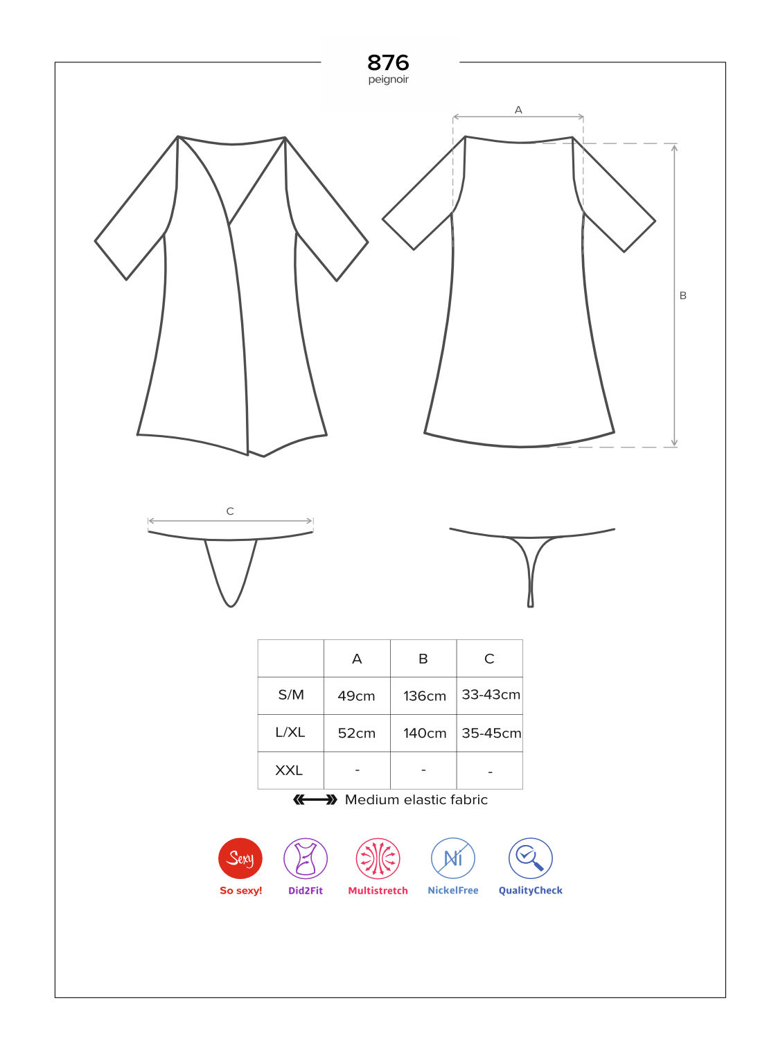 Alles bedeckt und doch alles zu sehen - so wird jeder Kopf verdreht! Lange offene Robe aus schwarzem hauchdünnem Stoff mit kleinen schwarzen Punkten zur verlockenden Präsentation schöner Dessous oder vollendeter Körperformen. Mit Flatterärmeln und vorn mit einem breiten schwarzen Satinband zu binden. Der Saum ist von feiner schwarzer Spitze umrahmt.