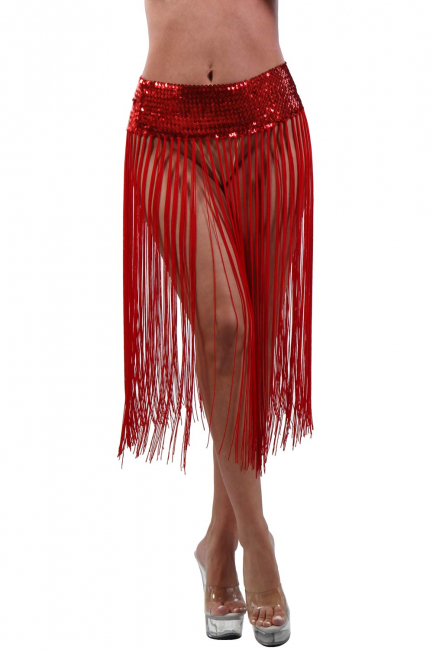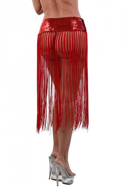 Burlesquer Fadenrock rot und halblang mit breitem Paillettenbund.
