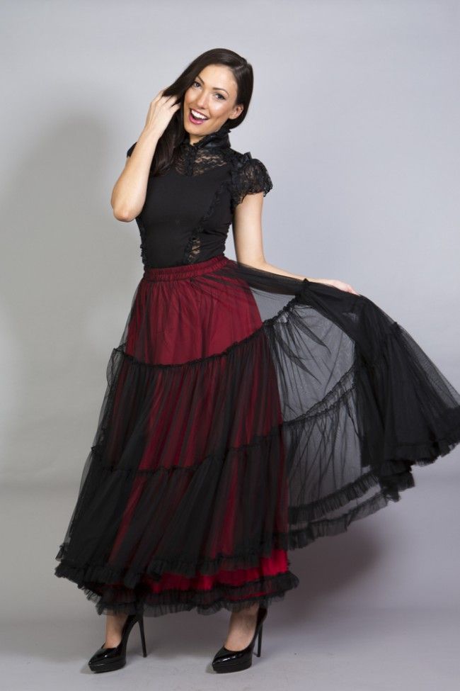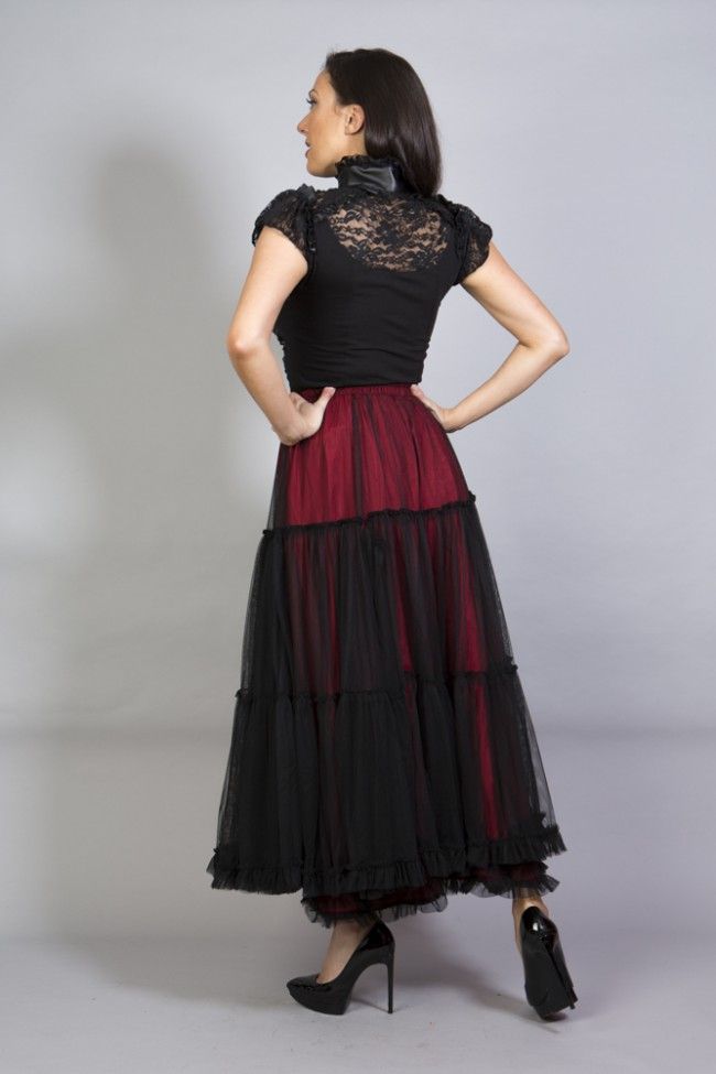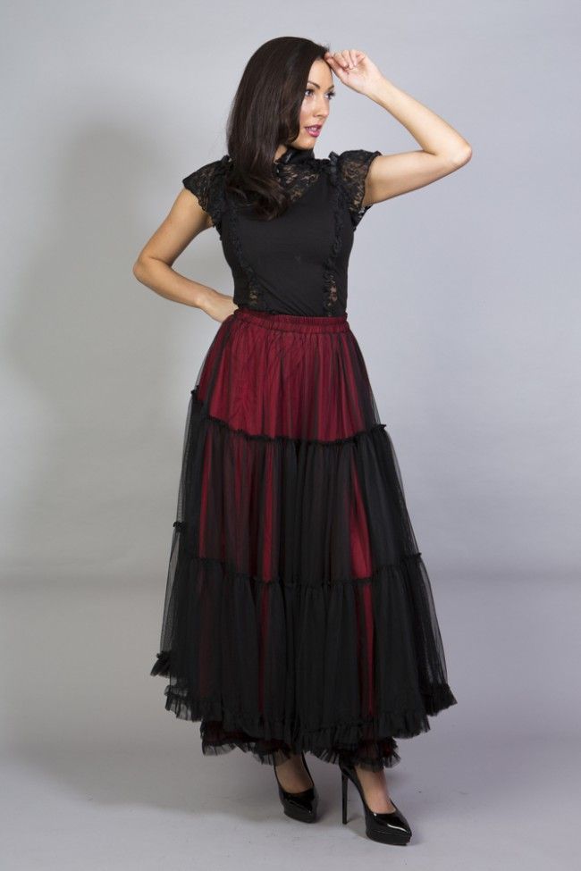 Roter Satinrock "Rara" mit schwarzer Tüll überdeckt