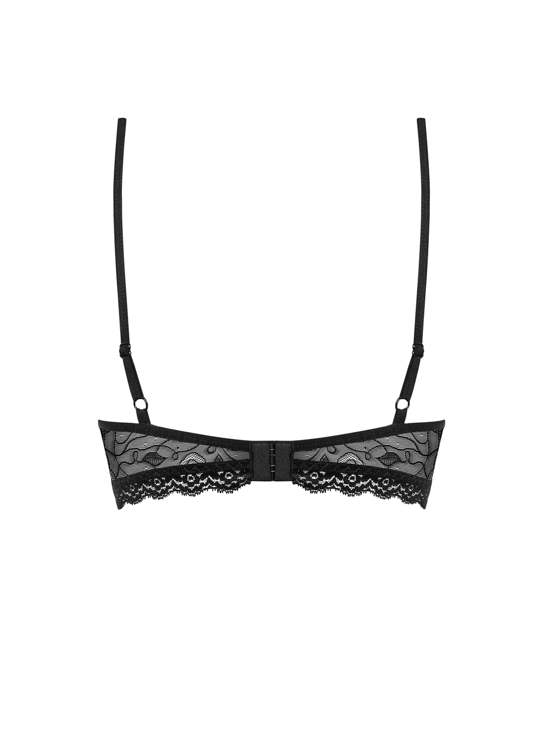 Dieser schwarze Spitzen BH aus weichem und elastischen Material mit trendy und sexy Doppelriemenoptik im Dekolleté, Rosenmuster in der Spitze und einem frechen Hingucker zwischen den Cups ist viel zu schade, um ihn untendrunter zu tragen. Unter einer transparenten Bluse getragen, lenkt er die Blicke jedoch wie von selbst... Der BH kann mit verstellbaren Trägern und einem mehrstufigen Verschluss perfekt der Passform angepasst werden.